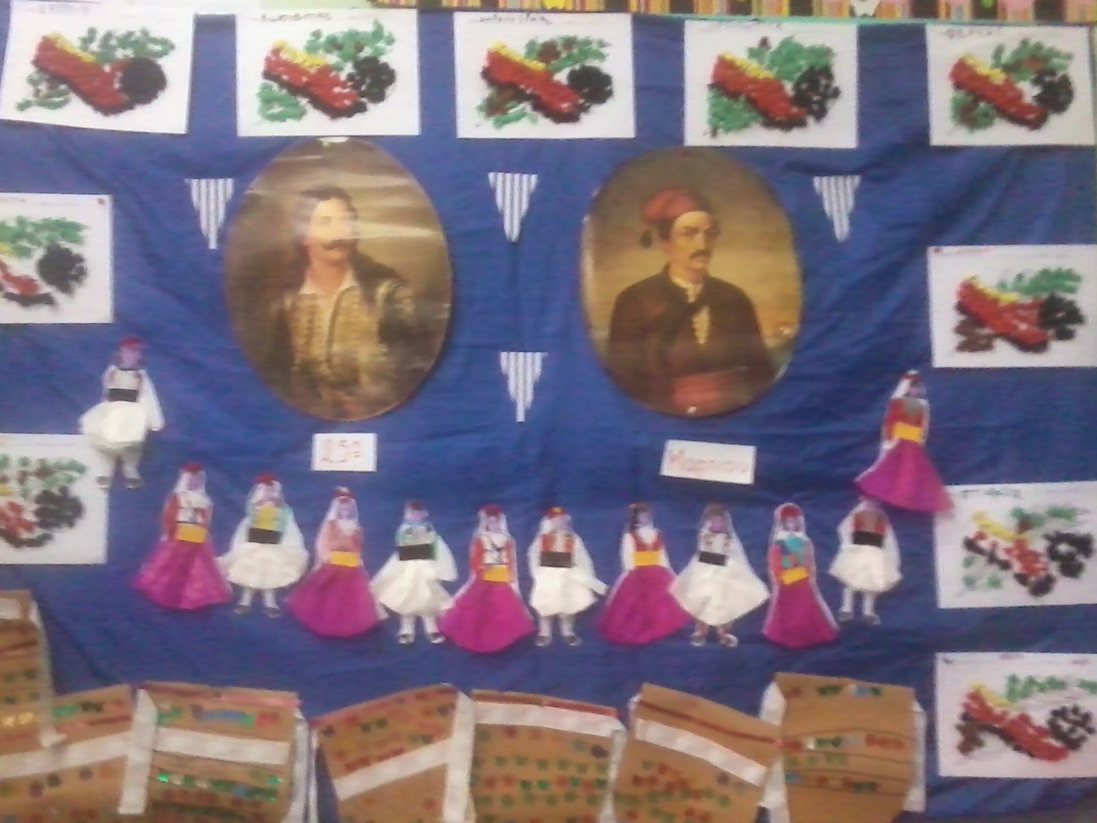 Μαθαίνοντας το τραγούδι “10 παλικάρια στήσανε χορό” για τη γιορτούλα μας αναγνώρισαν τα ονόματα των ηρώων και έμαθαν για τον Θεόφιλο, το ζωγράφο της λαϊκής μας παράδοσης. Είδαμε πίνακές του στο διαδίκτυο και προσπάθησαν να ζωγραφίσουν σαν αυτόν.