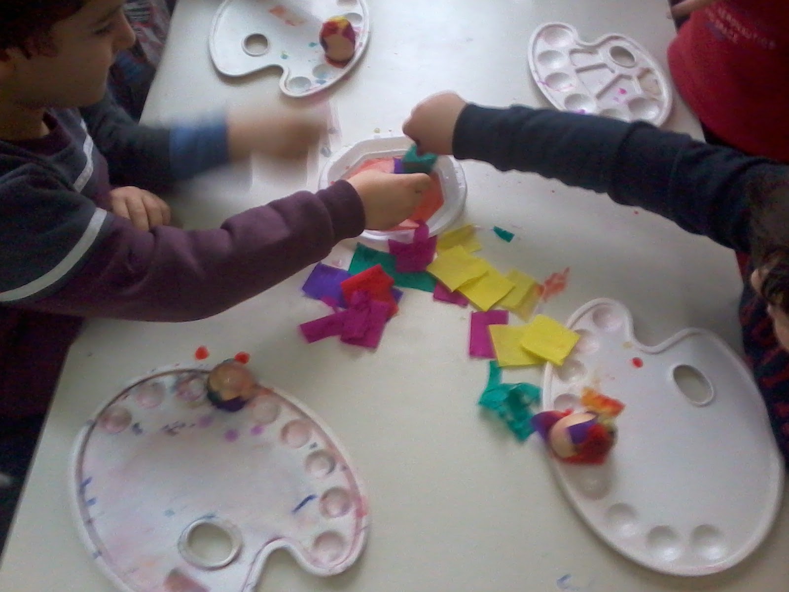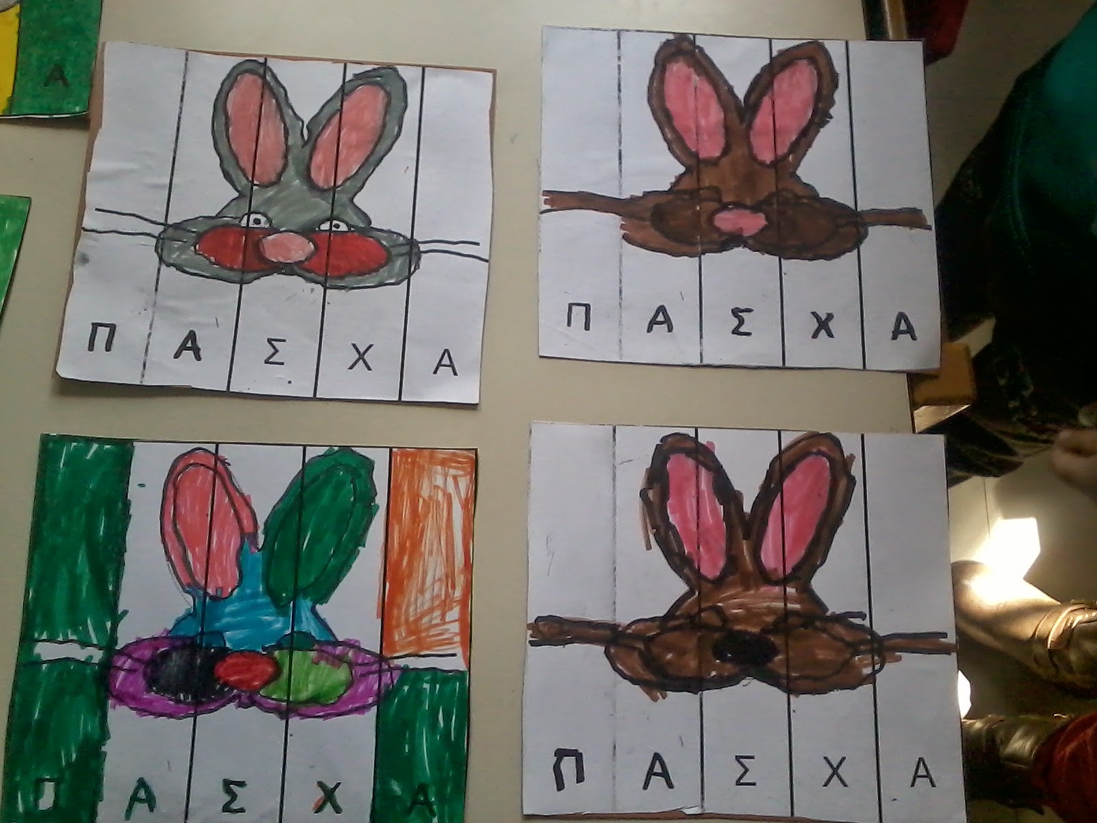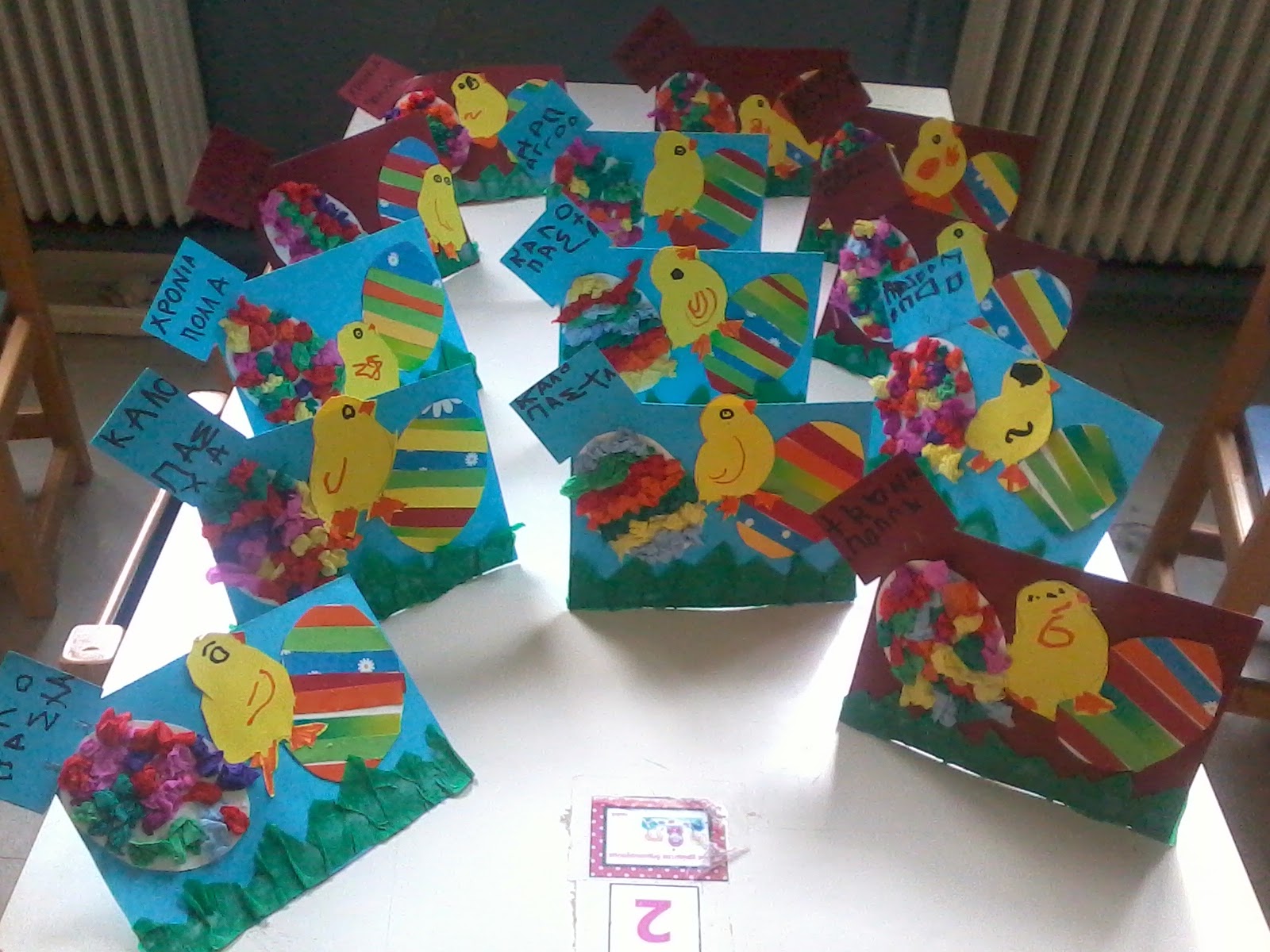 Διδάσκοντας σε ένα νηπιαγωγείο με μεικτό πληθυσμό (χριστιανοί – μουσουλμάνοι) είναι αναπόφευκτο ότι θρησκευτικές αναφορές είναι πιο θεμιτό να τις αποφεύγεις. Παρόλα αυτά υπάρχουν κατασκευές που γίνονται χωρίς να επηρεάζουν το θρησκευτικό συναίσθημα και κατασκευές που αρέσουν στα παιδιά. Να σημειώσω ότι τα αβγά τους αρέσουν πολύ βαμμένα Έτσι οι φετινές μας κατασκευές είναι: