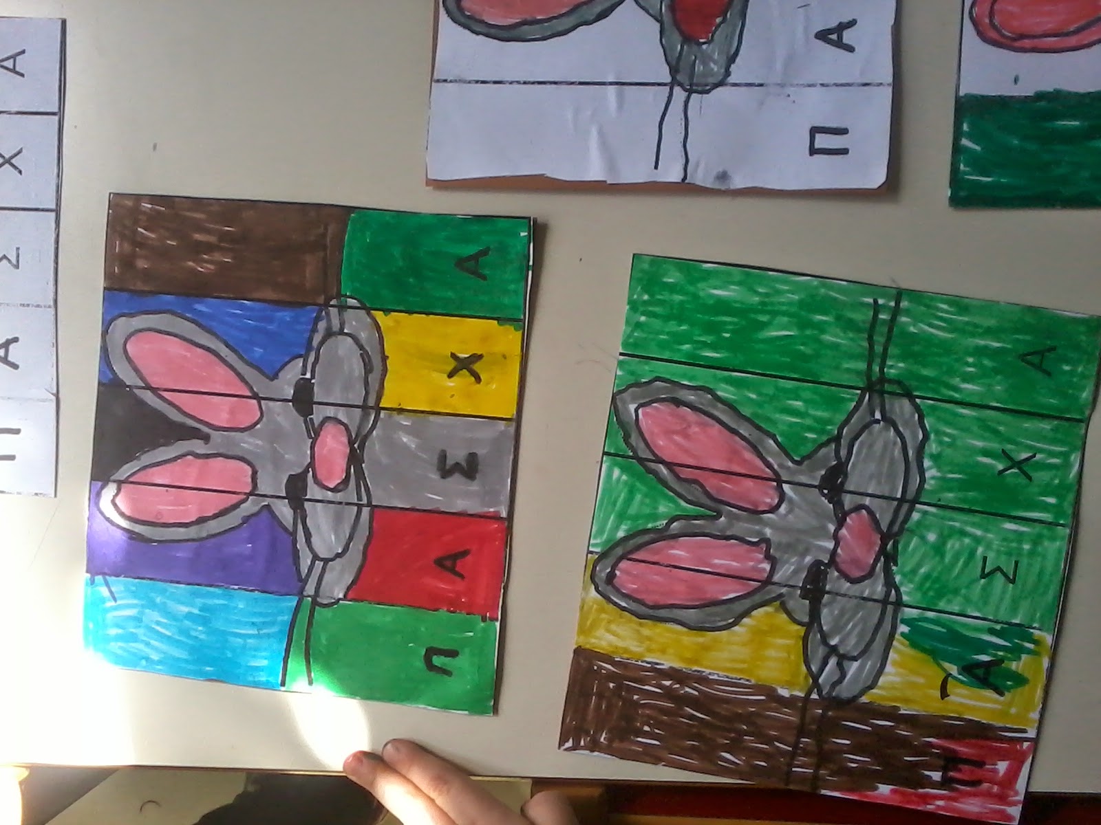 Το παζλ της λέξης “Πάσχα”. Μια παλιά εργασία. Τα παιδιά βάφουν και κόβουν το λαγό. Στη συνέχεια προσπαθούν να βάλουν στη σειρά τα γράμματα για να κάνουν ξανά το λαγό.