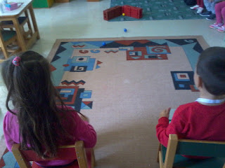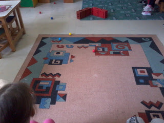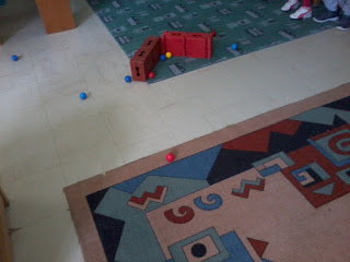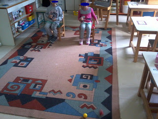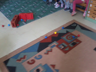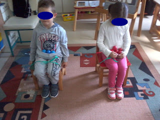 Προσπαθήσαμε κι εμείς να μπούμε στη θέση αυτών των ανθρώπων και δοκιμάσαμε κι εμείς να το παίξουμε.Έδεσα τα πόδια των παιδιών για να μην μπορούν να κουνηθούν, πήραν από 5 κόκκινες και 6 μπλε μπάλες και έπρεπε να φτάσουν τη μπάλα τους πιο κοντά στην άσπρη (κίτρινη δική μας).