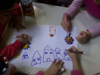 Κατόπιν διαβάσαμε τα “Μαγικά χρώματα” της Σ. Ζαραμπούκα, μάθαμε για τα βασικά χρώματα και τι γίνεται αν τα ανακατέψουμε. Στη συνέχεια γίναμε κι εμείς μαστρο -Τάκηδες.