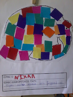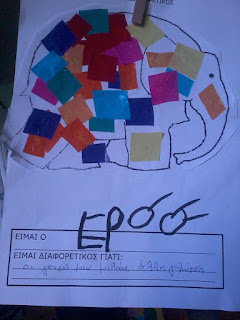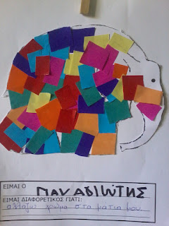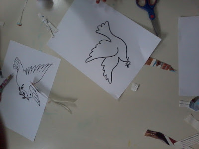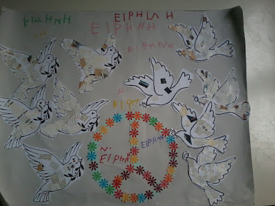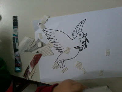 Μάθαμε ποιο είναι το σήμα της ειρήνης και ποιο πουλί συμβολίζει την ειρήνη. Το περιστέρι το σχεδίασαν με χαρτιά από περιοδικά που είχαν μόνο γράμματα (την ιδέα τη βρήκα από το Google images)
