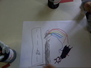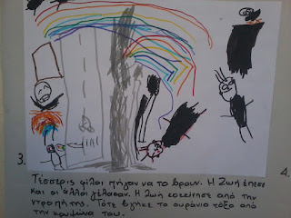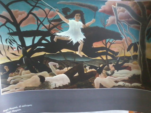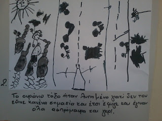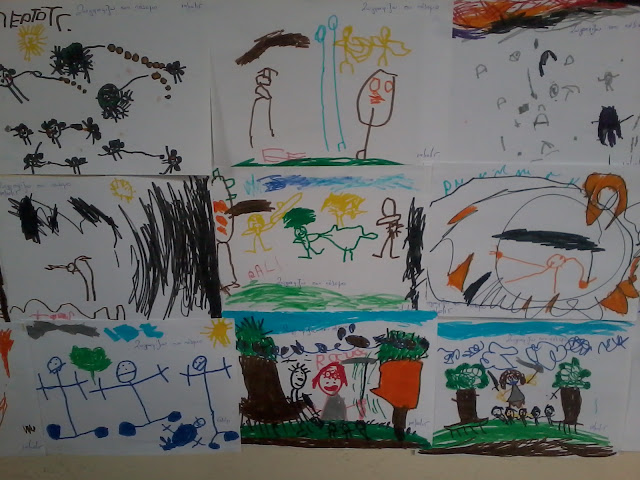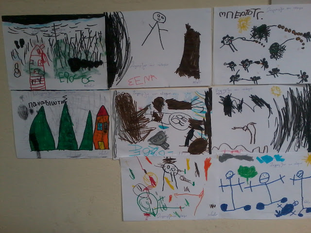 Κατόπιν τους είπα πώς ονόμασε ο ζωγράφος τον πίνακα και αναλύσαμε τα κακά του πολέμου και τα καλά της ειρήνης . Είδαμε εικόνες στο Google με βομβαρδισμούς, σπίτια γκρεμισμένα, ανθρώπους να κλαίνε. Ζωγράφισαν τον πόλεμο.
