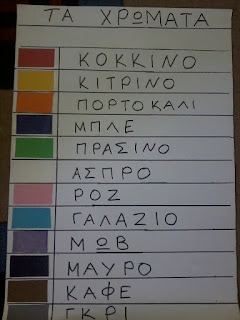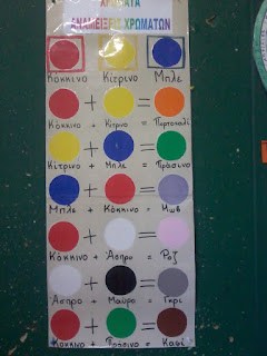 Κάναμε τον πίνακα των χρωμάτων. Και τους είχα έτοιμο ένα πίνακα με τις βασικές προσμίξεις.