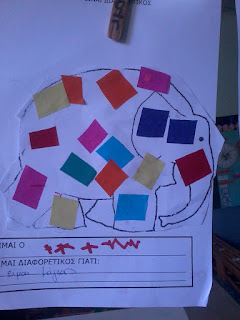 Μάθαμε ποιο είναι το σήμα της ειρήνης και ποιο πουλί συμβολίζει την ειρήνη. Το περιστέρι το σχεδίασαν με χαρτιά από περιοδικά που είχαν μόνο γράμματα (την ιδέα τη βρήκα από το Google images)
