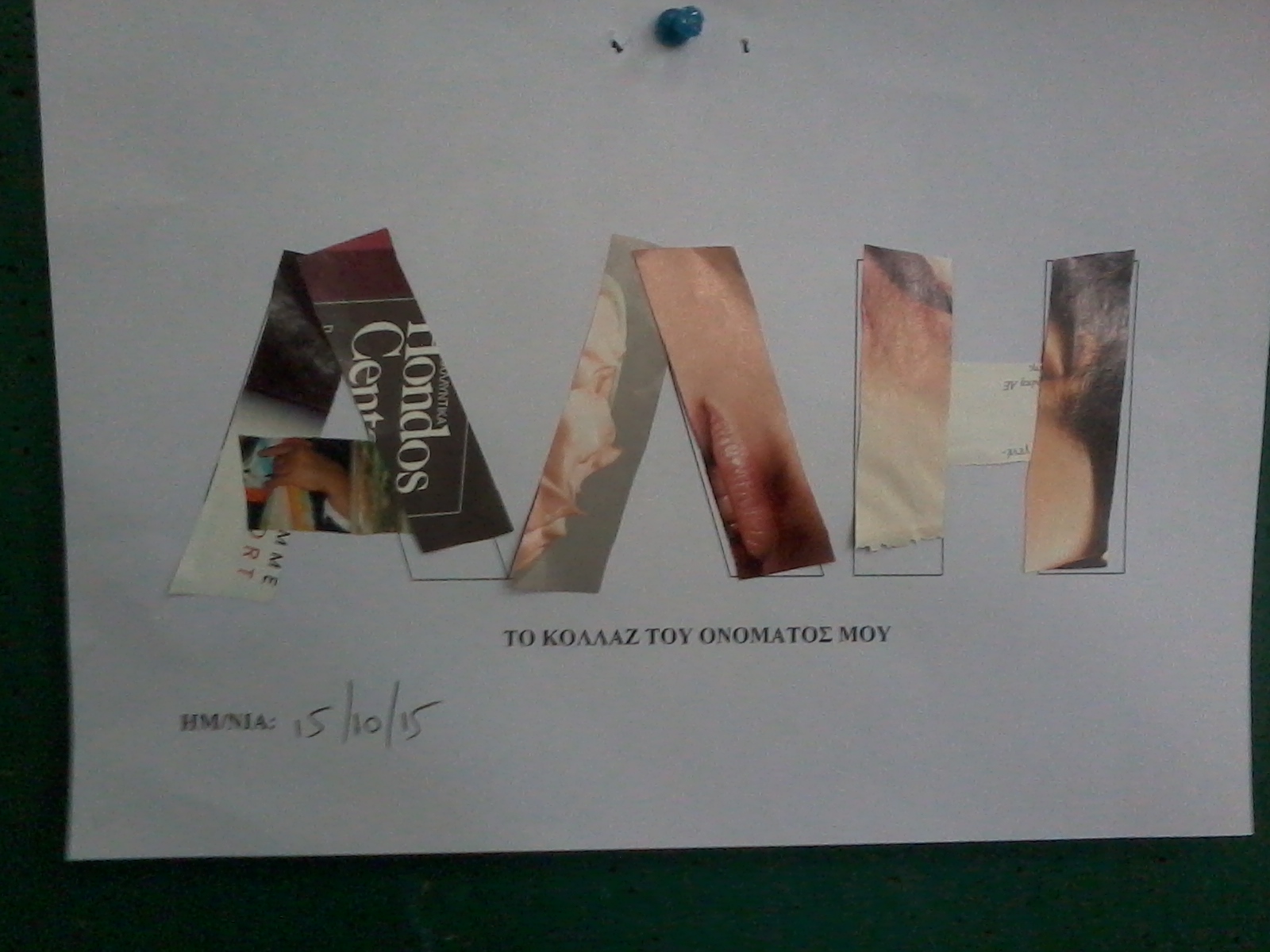Κατόπιν να κάνουν κολλάζ το όνομά τους, πάλι χρησιμοποιώντας λωρίδες χαρτιού.