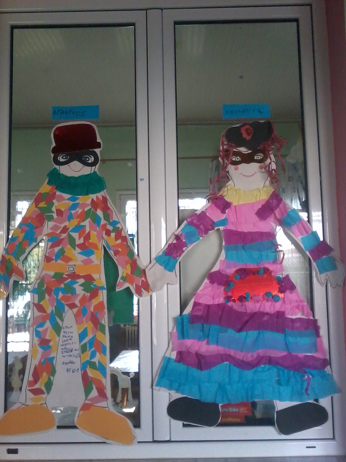 Κάναμε το περίγραμμα ενός αγοριού και ενός κοριτσιού και κάναμε τον Αρλεκίνο και την Κολομπίνα
