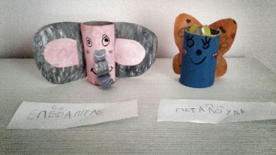 5. Να ξαναθυμηθούν το Ε,ε του ελέφαντα και το Π,π της πεταλούδας. Να γράψουν τη λέξη ΕΛΕΦΑΝΤΑΣ – ΠΕΤΑΛΟΥΔΑ.