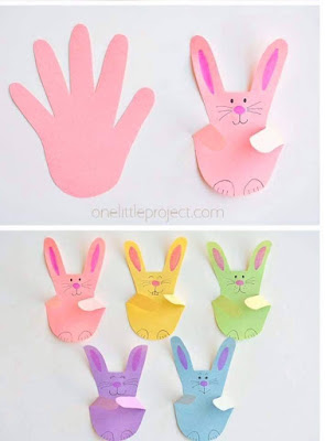 Κάντε λαγουδάκια. Ένας πολύ εύκολος τρόπος είναι αυτός: Ζωγραφίστε το χέρι σας, κόψτε το γύρω γύρω, ζωγραφίστε μάτια, μύτη, μουστάκια και έτοιμο το λαγουδάκι. Μπορείτε να κάνετε πολλά και να τα κολλήσετε γύρω γύρω από το καλαθάκι σας.