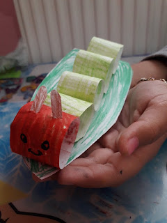 - στο 2 κολλήστε βιδούλες ή κοφτό μακαρονάκι για την κάμπια