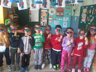 Στο αποκριάτικο πάρτι του σχολείου μας ντύθηκαν μόνο δύο παιδιά. Λόγω ιώσεων έλειπαν αρκετά και κάποια δεν ντύνονται καρναβάλια. Είχαμε όμως έτοιμες τις μάσκες της Μέρας – Νύχτας έτσι έβαλαν εκείνες. Λίγα πράγματα φέτος.