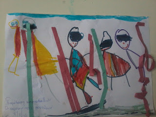 Κάναμε το περίγραμμα ενός αγοριού και ενός κοριτσιού και κάναμε τον Αρλεκίνο και την Κολομπίνα