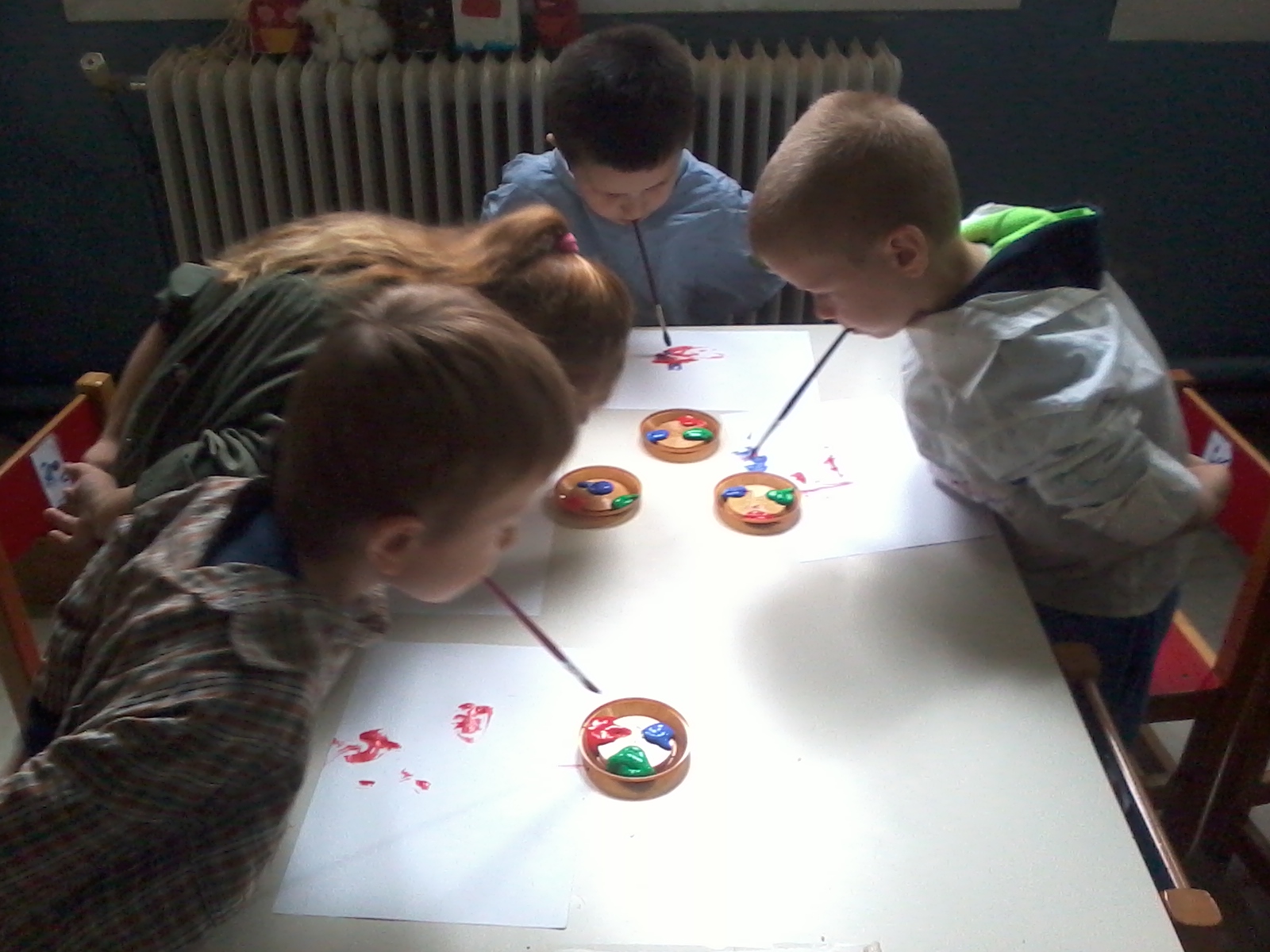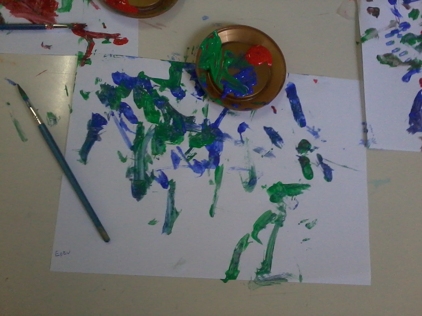 3ο βήμα Με λεπτό πινελάκι προσπάθησαν να κάνουν το λιβάδι χρησιμοποιώντας κόκκινο, πράσινο, κίτρινο, καφέ
