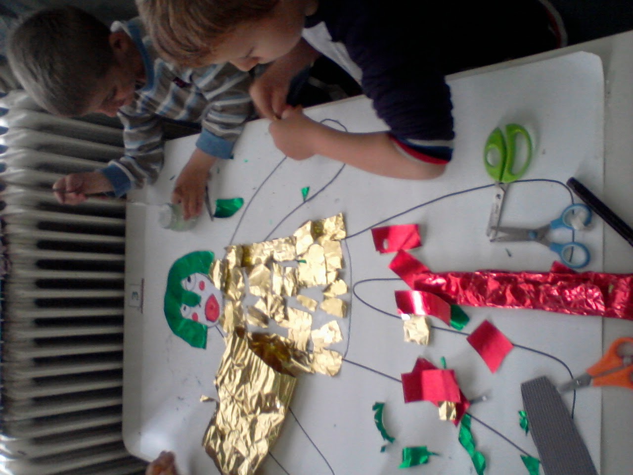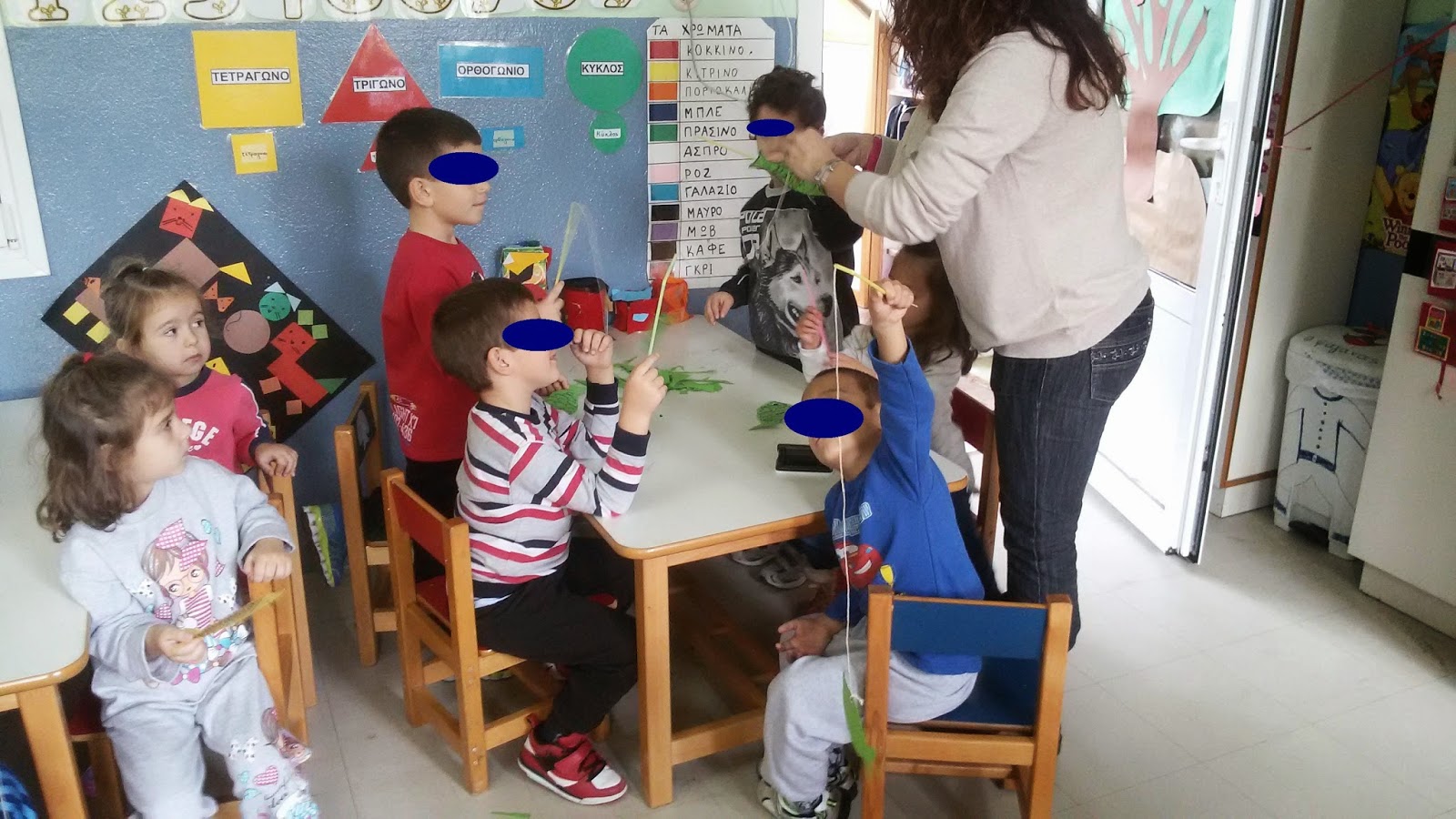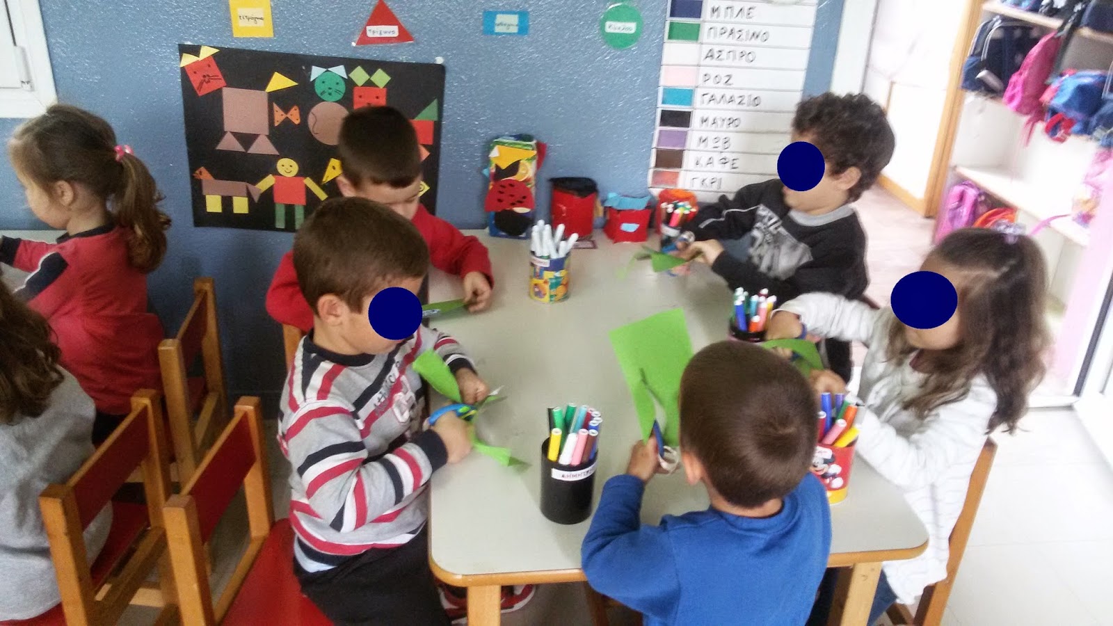 Όσο οι μεγάλοι ζωγράφιζαν οι μικροί ή κάποιοι που δεν ήθελαν να ζωγραφίσουν έκοβαν τα προσωπεία που είχαν κάνει για να τα βάλουμε κι αυτά