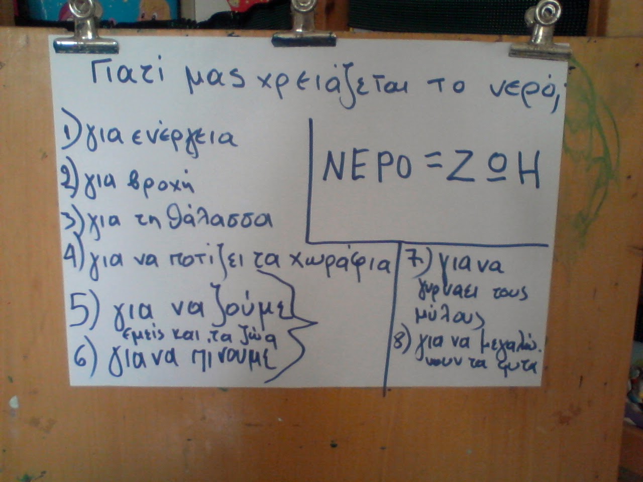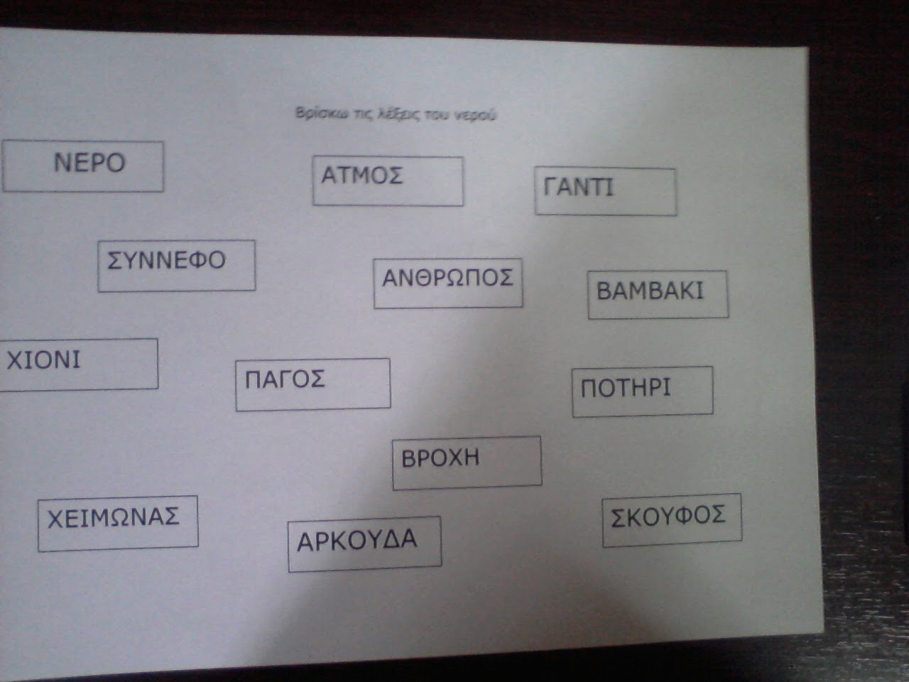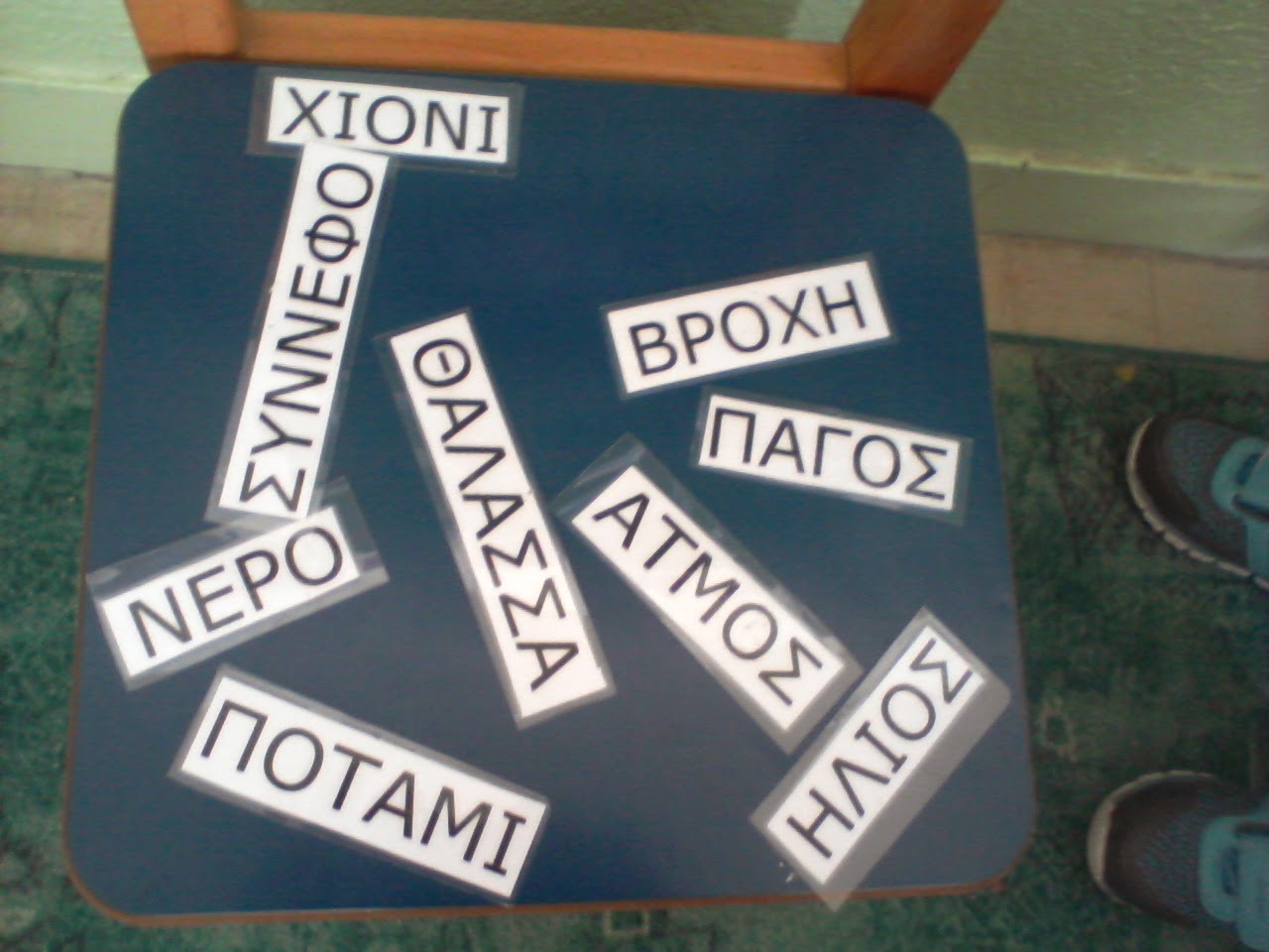 Η συνέχεια πήγε κάπως έτσι και τα παιδιά προσπαθούσαν να βρουν και να συνθέσουν κάθε λέξη που σκέφτονταν με το νερό. Μερικές ήταν πολύ αστείες και άλλες πολύ μπερδεμένες. Κατάλαβαν όμως τη σύνθεση των λέξεων.