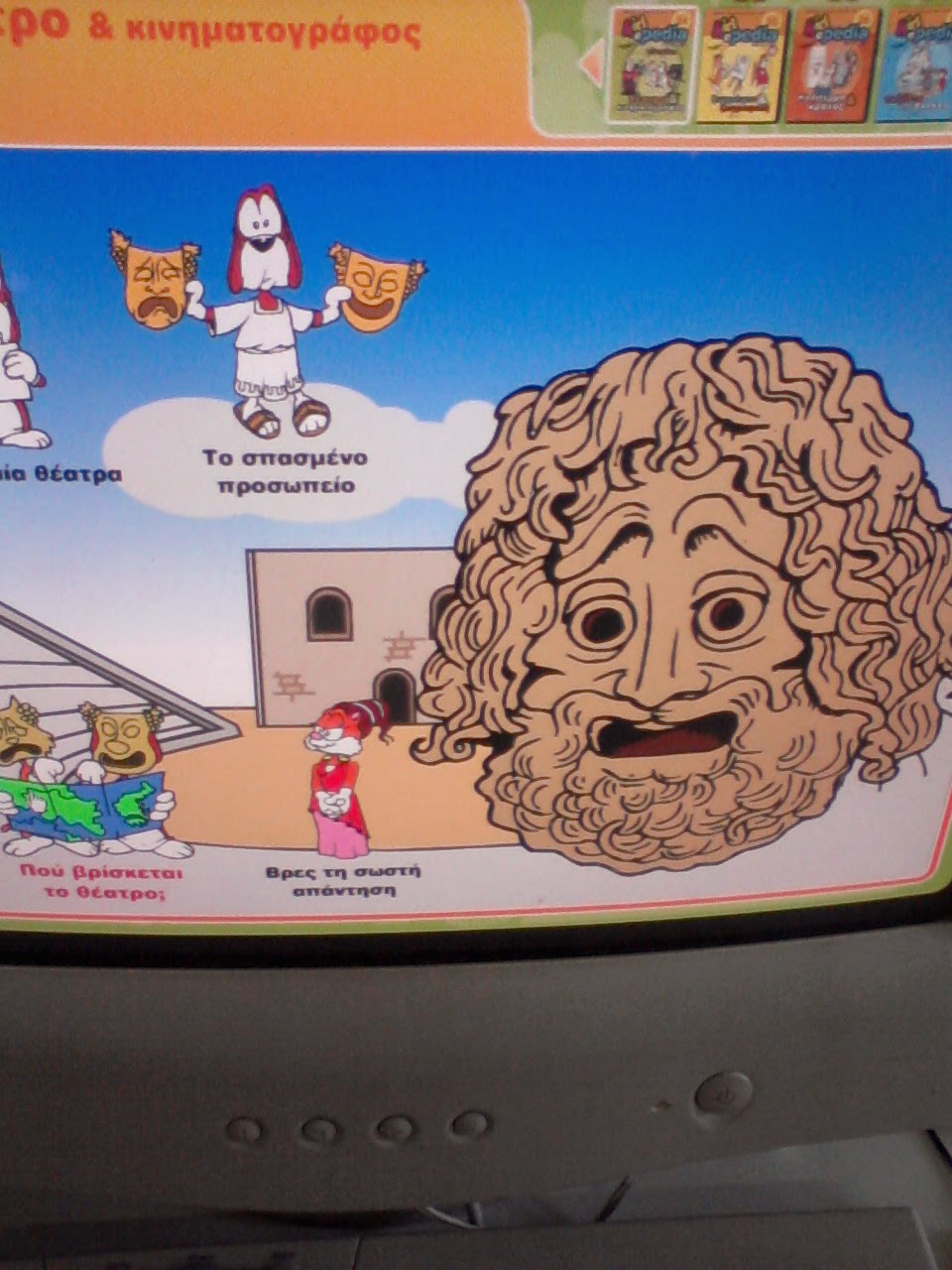 Μέσα από το παιχνίδι της Kidepaideia, στο οποίο ανατρέχουμε κάποιες φορές για ορισμένες θεματικές ενότητες, υπάρχει ο τόμος Θέατρο-Κινηματογράφος. Στο πρώτο μέρος του αναφέρεται στο αρχαίο θέατρο.