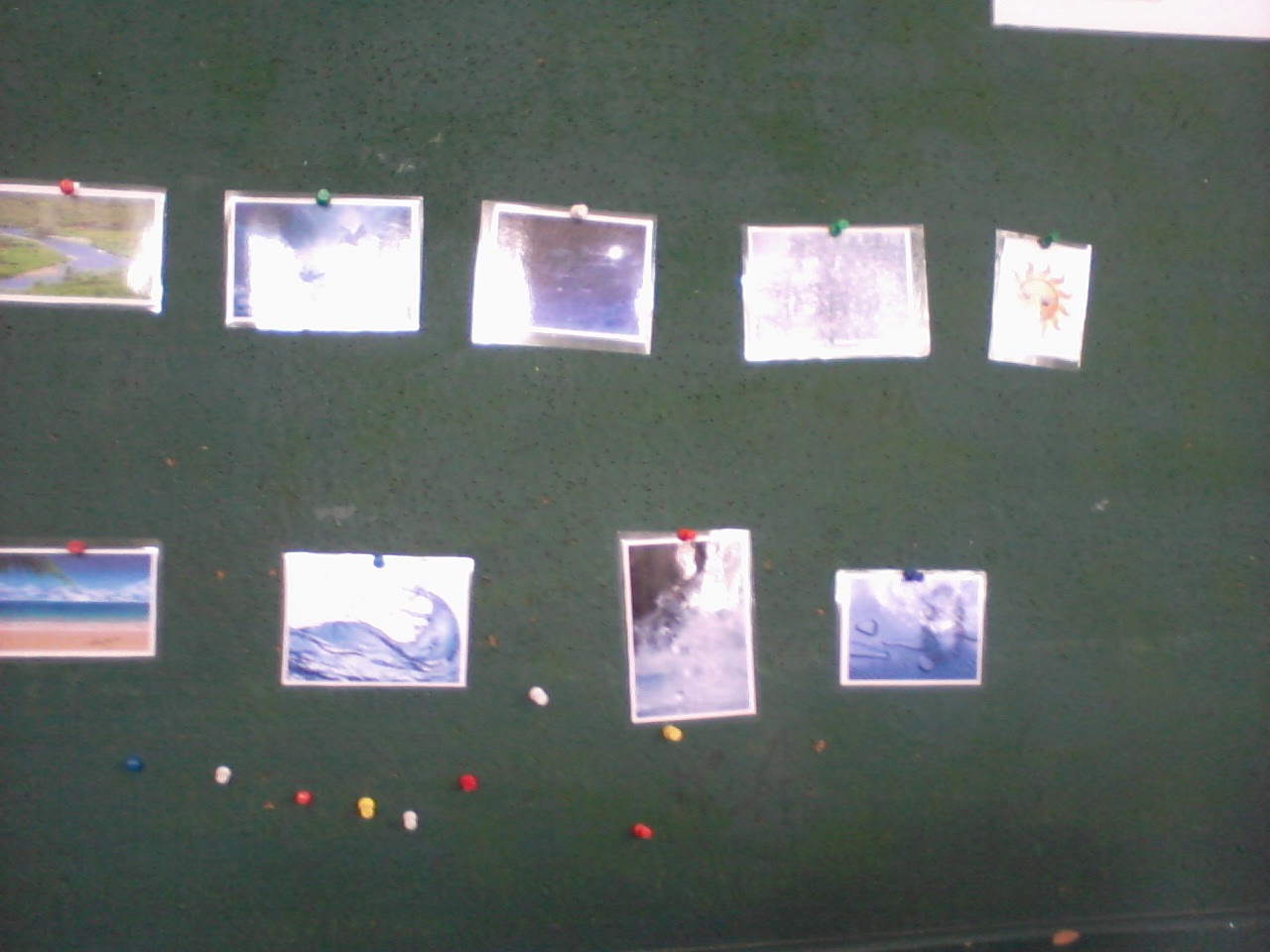 Κατόπιν μιλήσαμε για τις τρεις καταστάσεις του νερού. ΥΓΡΟ – ΣΤΕΡΕΟ – ΑΕΡΙΟ. Είδαμε φωτογραφίες, τις βάλαμε στη σειρά, μάθαμε τις λέξεις, αντιστοιχίσαμε εικόνα με λέξη: