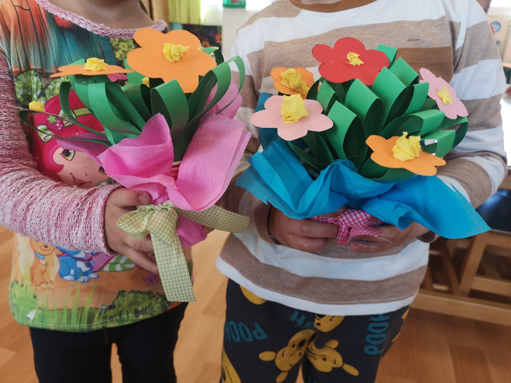 Δεν θα μπορούσαμε όμως να μην προσκαλέσουμε τις μανούλες στην τάξη μας για να τους παρουσιάσουμε μια έκπληξη που τους είχαμε ετοιμάσει. Τα παιδιά παρουσίασαν το τραγουδάκι που είχαμε μάθει και το συνόδευσαν με χορευτικές κινήσεις. Έπειτα έτρεξαν στην αγκαλιά της μαμάς τους και τις πρόσφεραν τα δωράκια τους.