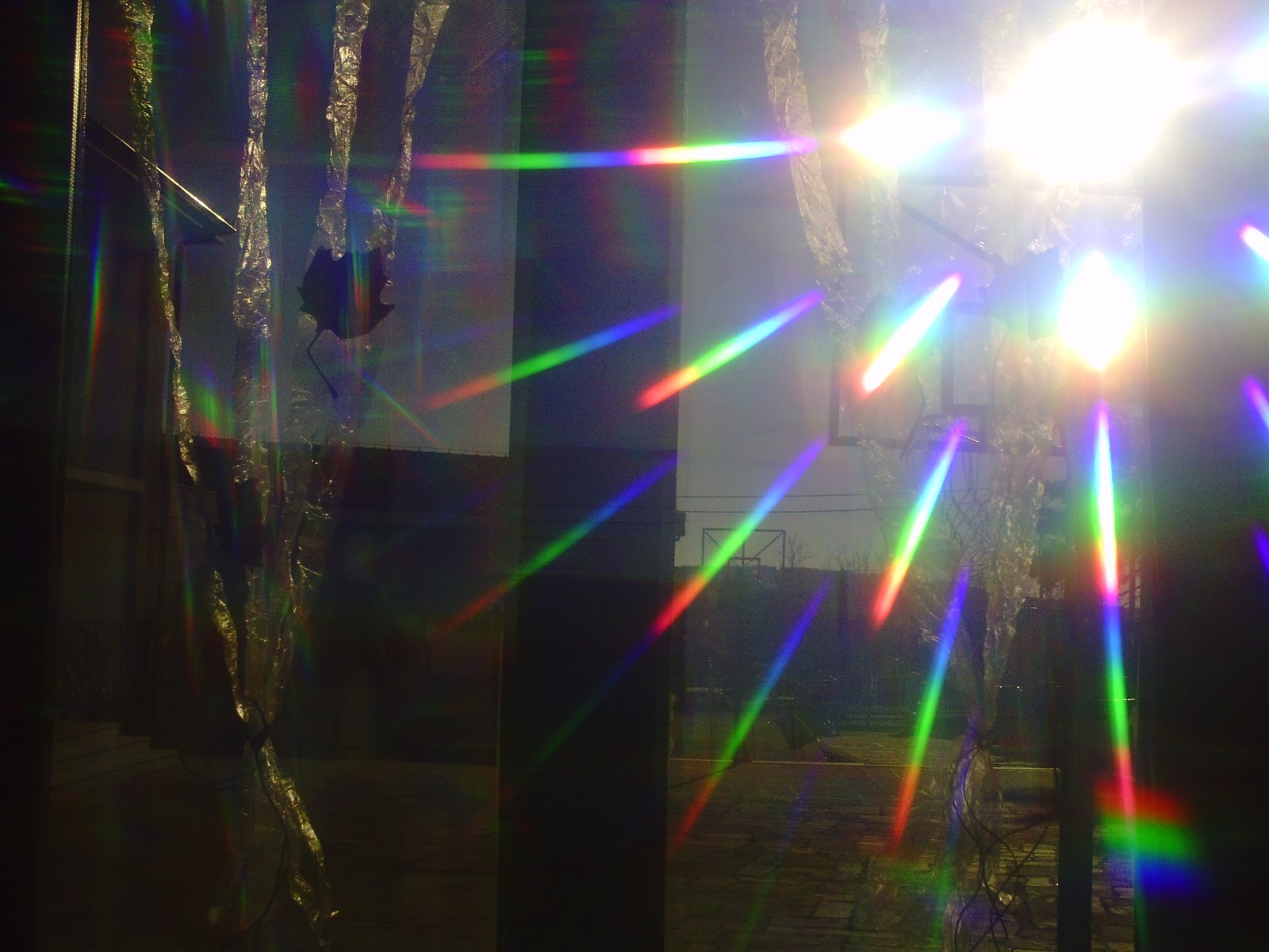 | Φοράμε τα γυαλιά και κοιτάζοντας έξω από το παράθυρο τον ήλιο, βλέπουμε ουράνια τόξα!!! |