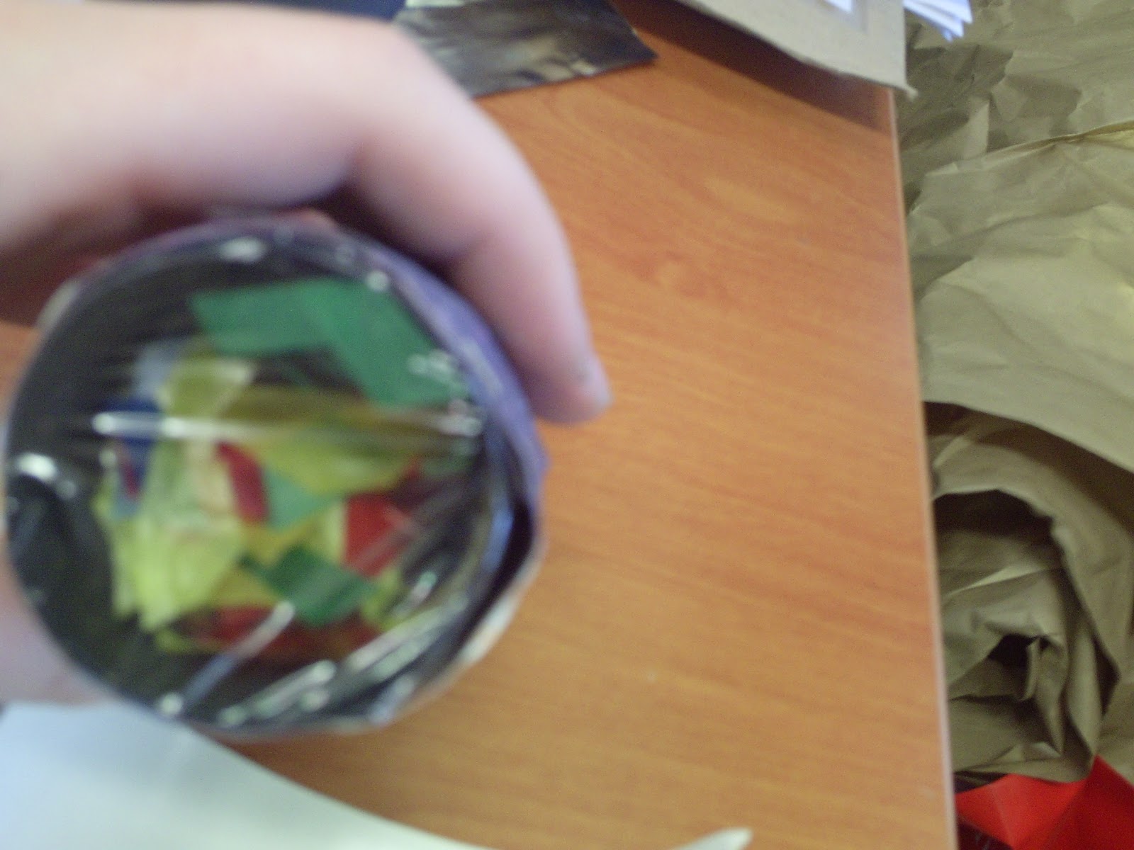 | Κόβουμε μικρά χαρτάκια και φτιάχνουμε και ένα δεύτερο κύλινδρο με μαύρο χαρτόνι |