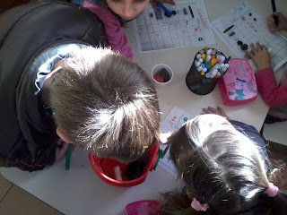 αραιωμένη δακτυλομπογιά σε παγοθήκη και τα αφήσαμε στην κατάψυξη, αφού