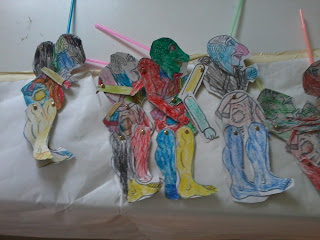 Δακτυλόκουκλα, ομπρέλες από διάφορα υλικά. Εφημερίδα, σακούλα, χαρτοπετσέτα, ύφασμα