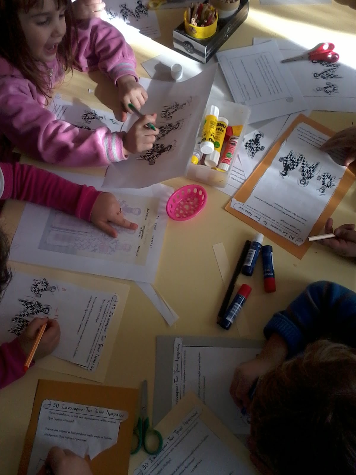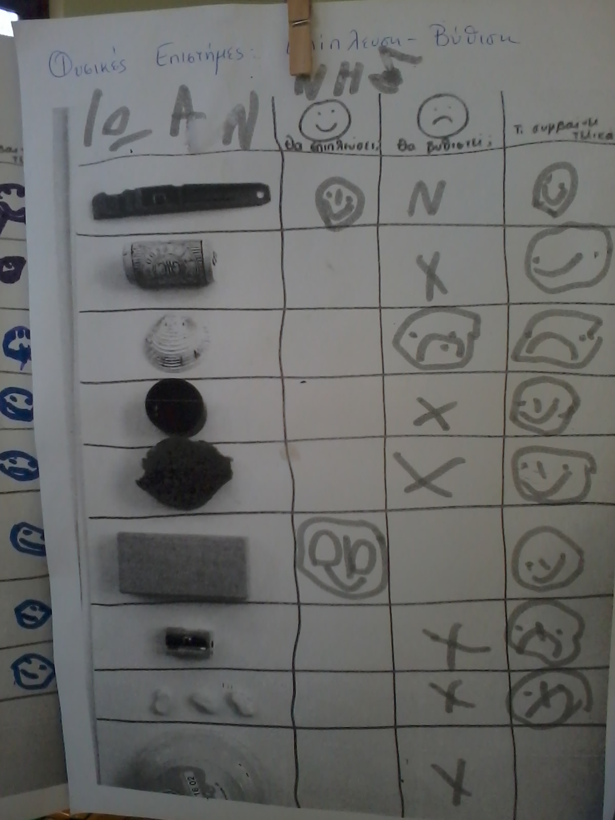 Τα παιδιά συζητούν τα αποτελέσματά τους. Η Ολυμπία ζητά να της εξηγήσουν τις ιδιότητες του υλικού πουπρέπει να διαλέξει για να φτιάξει μια μεγάλη ομπρέλα και να μην ξαναβραχεί (Διατύπωση λειτουργικού ορισμού).