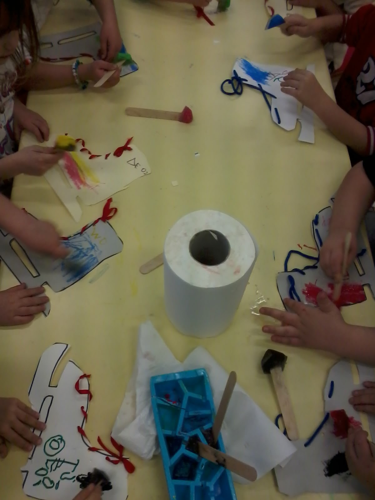Υλικά: Χαρτί κουζίνας, εφημερίδα, ύφασμα, σακούλα.