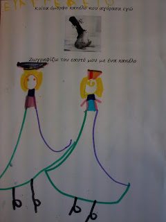 Τα παιδιά τα είπαν όλα (γιατρός, αστυνόμος, παπάς, πυροσβέστης, χιονάνθρωπος, κυνηγός, στρατιώτης, μάγειρας, Άη Βασίλης, μάγισσα, καουμπόυ, κλόουν κλπ), καπέλα λόγω επαγγέλματος, καπέλα για προστασία, καπέλα στολής, και μερικά απρόσμενα, όπως το “καπέλο” του Αγίου Δημητρίου (φωτοστέφανο). Τώρα έχουμε άφθονο υλικό για συζήτηση και μεταμφιέσεις τις ημέρες που έρχονται.