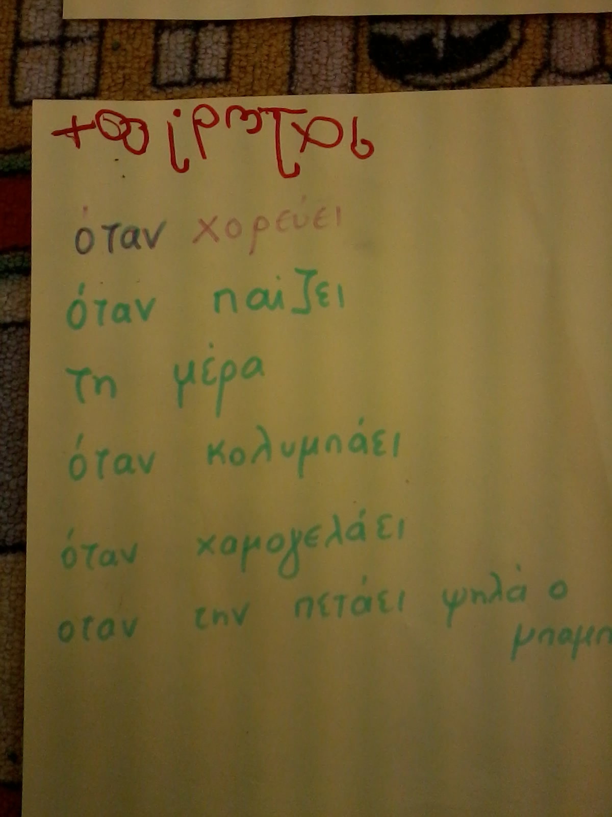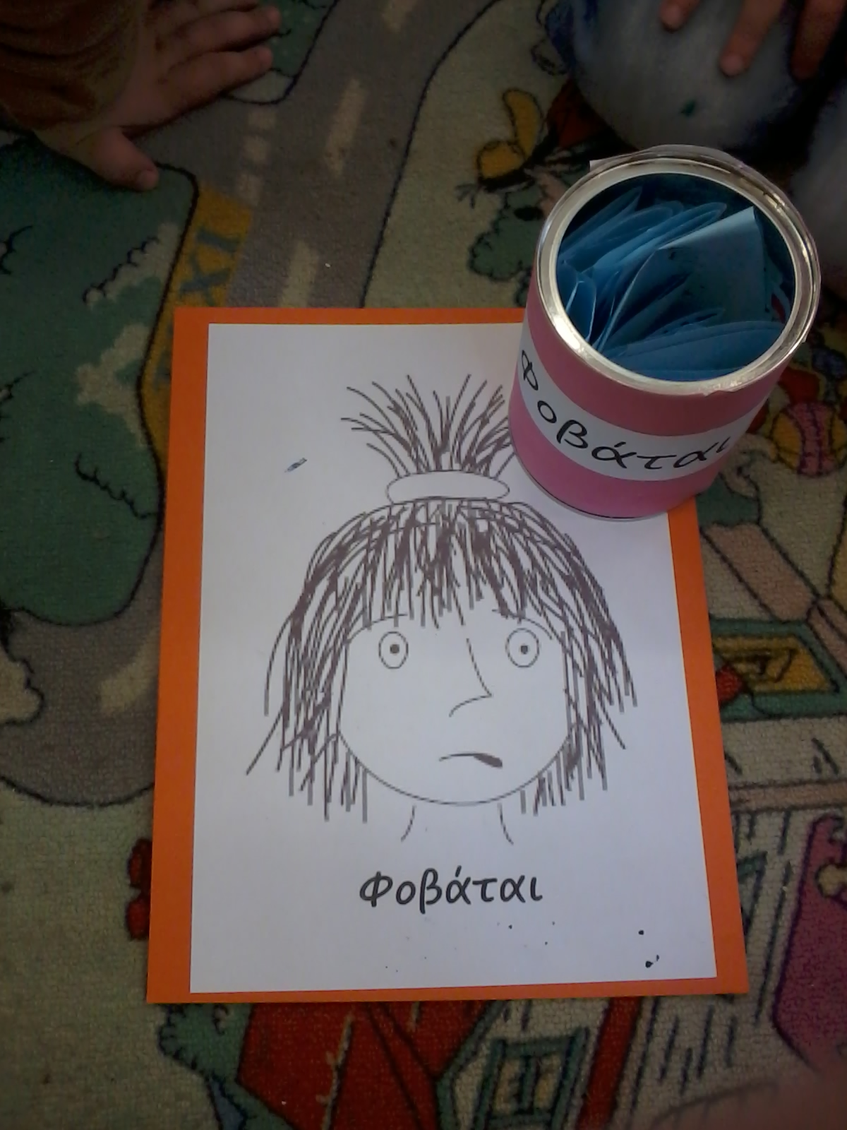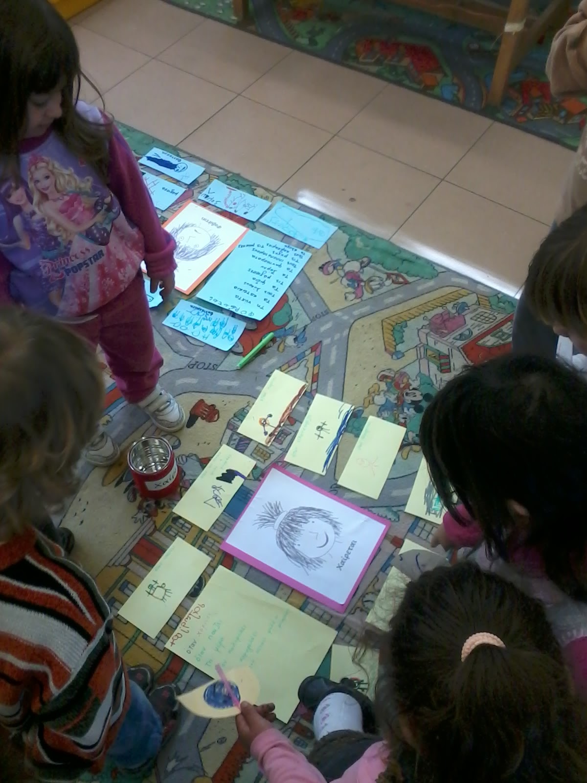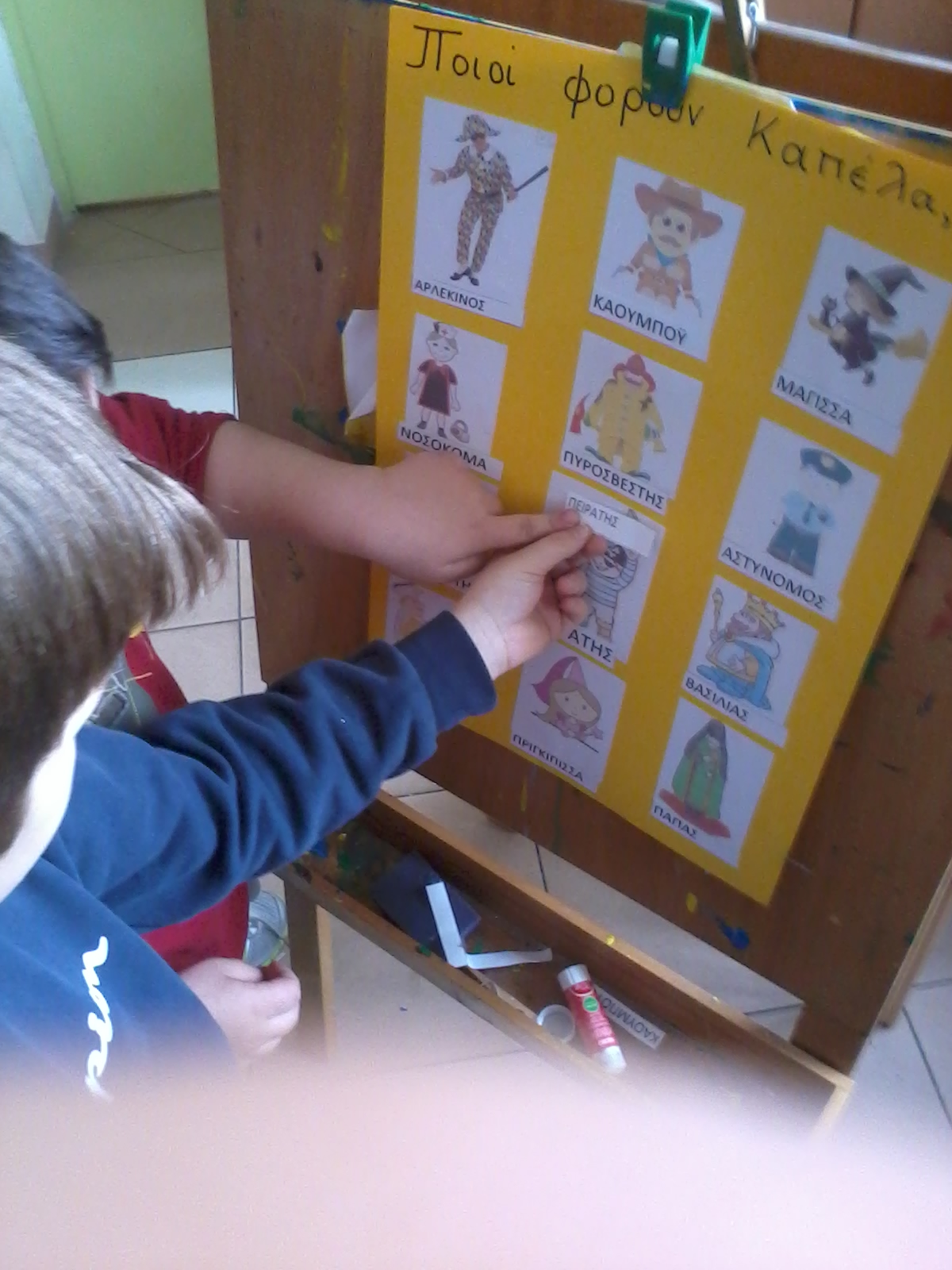 Τα παιδιά τα είπαν όλα (γιατρός, αστυνόμος, παπάς, πυροσβέστης, χιονάνθρωπος, κυνηγός, στρατιώτης, μάγειρας, Άη Βασίλης, μάγισσα, καουμπόυ, κλόουν κλπ), καπέλα λόγω επαγγέλματος, καπέλα για προστασία, καπέλα στολής, και μερικά απρόσμενα, όπως το “καπέλο” του Αγίου Δημητρίου (φωτοστέφανο). Τώρα έχουμε άφθονο υλικό για συζήτηση και μεταμφιέσεις τις ημέρες που έρχονται.