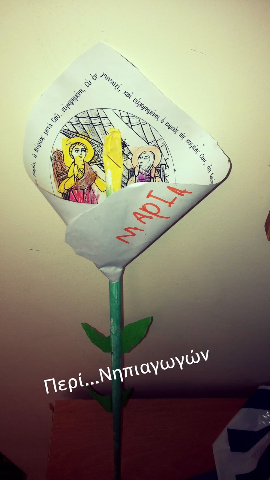 Ο κρίνος που κάναμε φέτος ήταν μία δική μου έμπνευση. Ήθελα να έχει το μήνυμα της ημέρας, να απεικονίζει τον Ευαγγελισμό. Έτσι σχεδίασα το παρακάτω σχήμα
