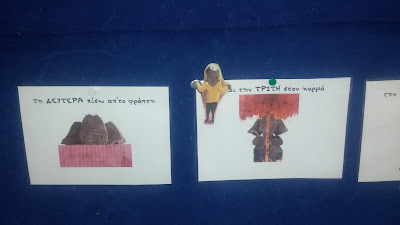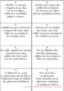 Έπειτα σηκώνουμε την καρτέλα και τα παιδιά σε δυάδες, χωρίς να μιλούν αναπαριστούν τον κανόνα.