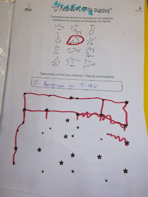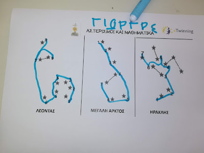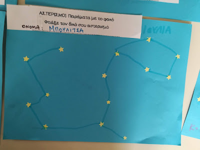 Στη συνέχεια είδαμε αστερισμούς και προσπαθήσαμε να μαντέψουμε τα ονόματά τους. Σαν τι μοιάζουν άραγε;;;