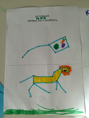 Το συνδυάσαμε και με το γράμμα του Λέανδρου, του λιονταριού μας, που μας ανέθεσε την αποστολή να βρούμε αγγεία που να απεικονίζουν λιοντάρια.