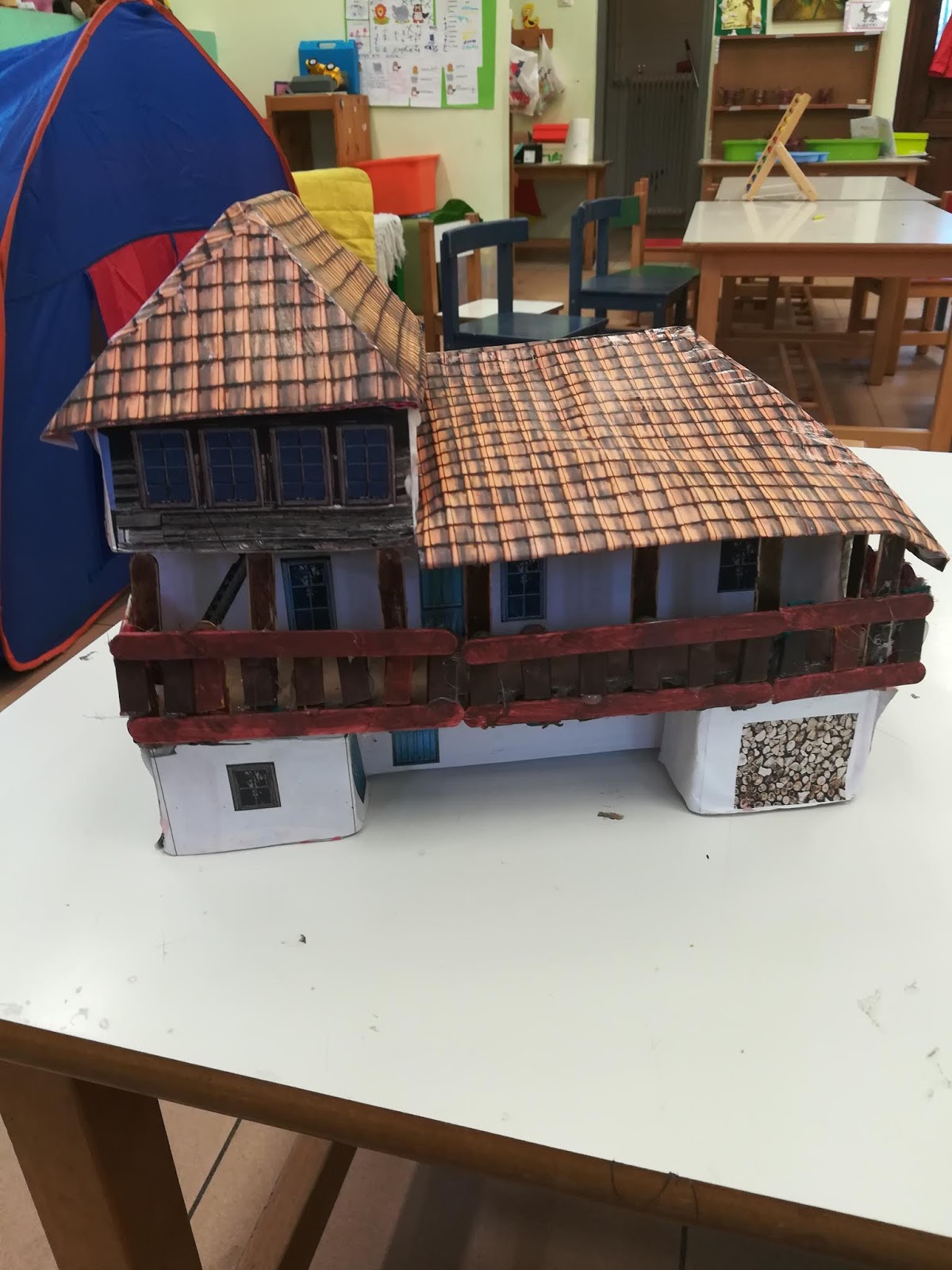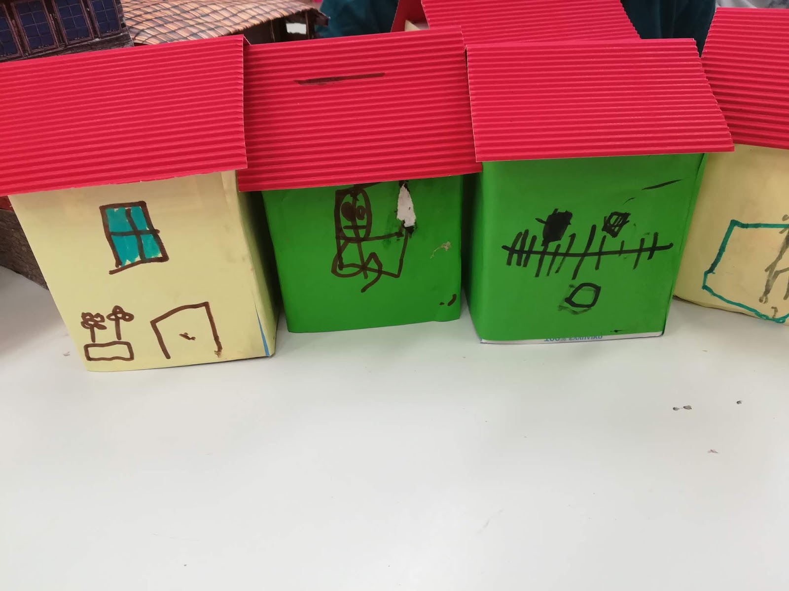 Τα σπίτια έγιναν αποκλειστικά από τα παιδιά από άδεια κουτιά γάλακτος.