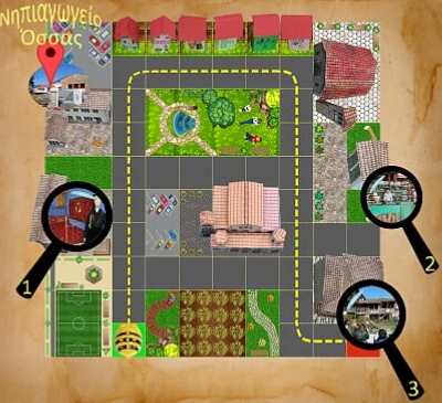 Με τη βοήθεια της τεχνολογίας, ορίσαμε τα σημεία του χάρτη από την είσοδο του χωριού και επιλέξαμε τις εικόνες. Τοποθετώντας τις στη σειρά, συνθέσαμε το χάρτη. Η εξαιρετική συνάδελφος και μαμά Γρηγορία Θεοδωρίδου, ανέλαβε το σχεδιασμό και την εκτύπωση του χάρτη σε μουσαμά.