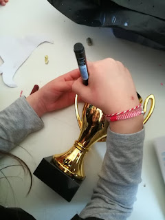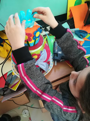 - Με διάφορα κουτιά κατασκευάσαμε το σκελετό και βάψαμε το υποβρύχιο του Γιώργου.