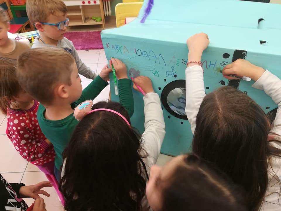 Παιδιά γονείς και νηπιαγωγός οργανώνουμε ένα πρότζεκτ κάθε εβδομάδα, ανάλογα με το θέμα που κληρώνεται.