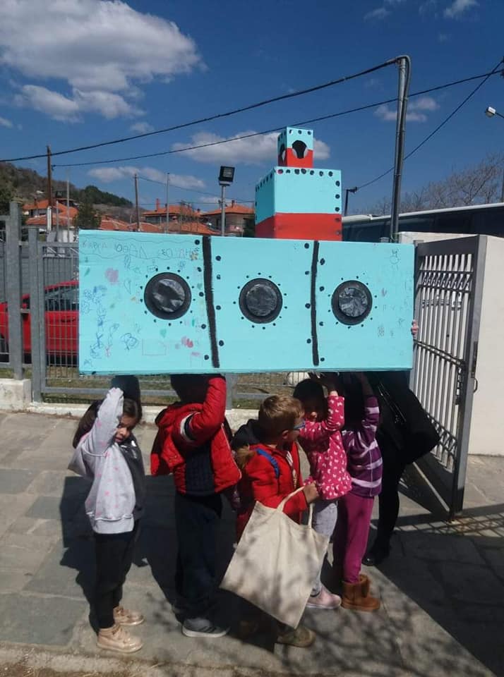 • Με διάφορα κουτιά κατασκευάσαμε το σκελετό και βάψαμε το υποβρύχιο του Γιώργου.