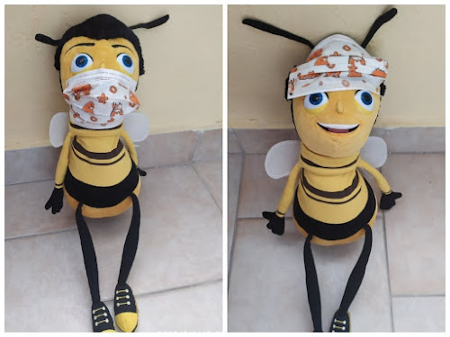 Έτσι, ετοίμασα μια κατασκευή μέλισσας που περιλαμβάνει το γράμμα και τη μάσκα (αποκριάτικη).