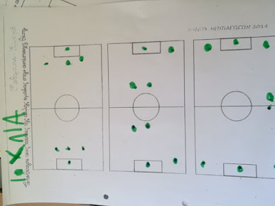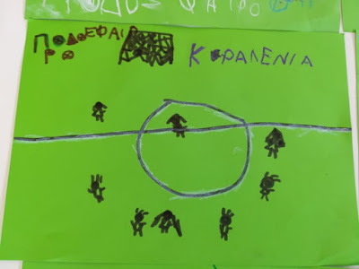 Παιχνίδι στην Ολομέλεια: το ένα παιδί τοποθετούσε τους “παίκτες” της κόκκινης ομάδας και το άλλο έπρεπε να τοποθετήσει τους πράσινους, συμμετρικά