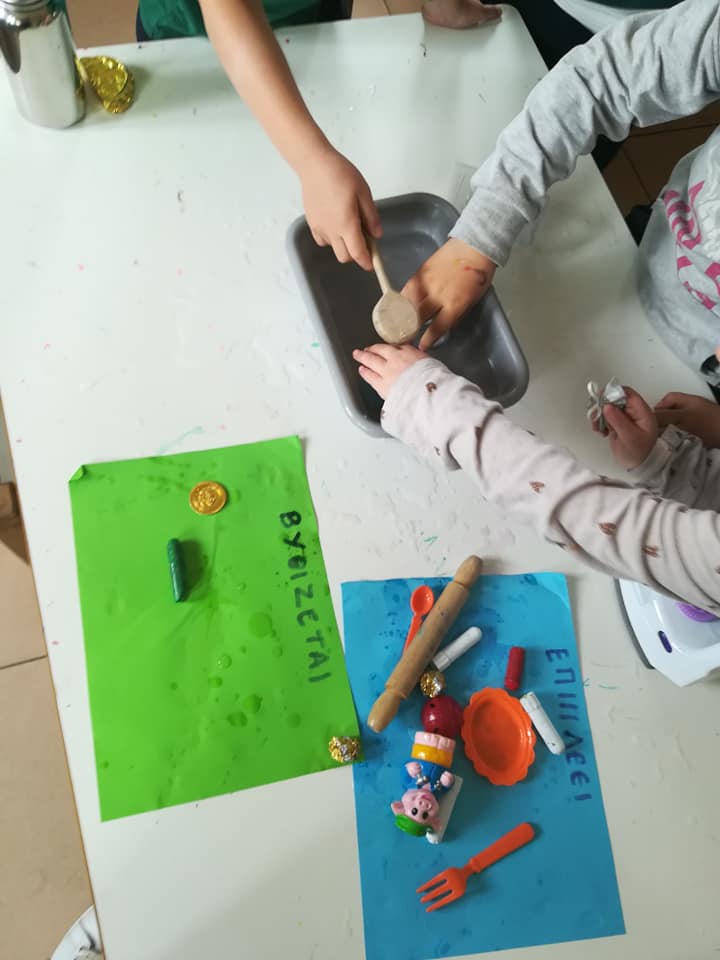 Παιδιά γονείς και νηπιαγωγός οργανώνουμε ένα πρότζεκτ κάθε εβδομάδα, ανάλογα με το θέμα που κληρώνεται.