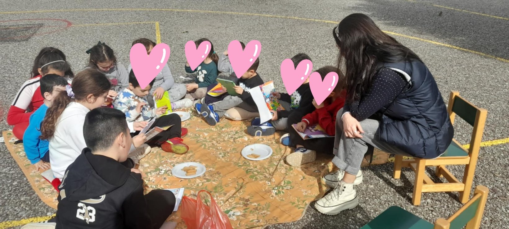 Την Τετάρτη 2 Απριλίου ήταν Παγκόσμια Ημέρα Παιδικού Βιβλίου. Κάθε παιδί είχε φέρει από το σπίτι του το αγαπημένο του παραμύθι – βιβλίο. Έτσι πήραμε μαζί μας τα μαξιλαράκια μας και βγήκαμε έξω στην αυλή του σχολείου και κάναμε πικνικ φιλαναγνωσίας. Κάθε παιδί μας παρουσίαζε το βιβλίο που επέλεξε και μας έλεγε λίγα λόγια για αυτό.