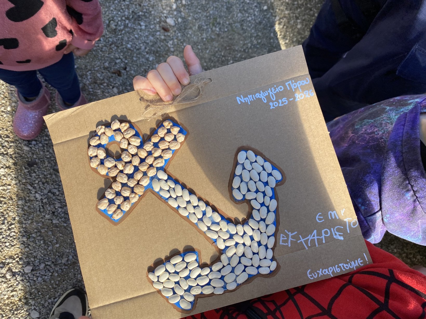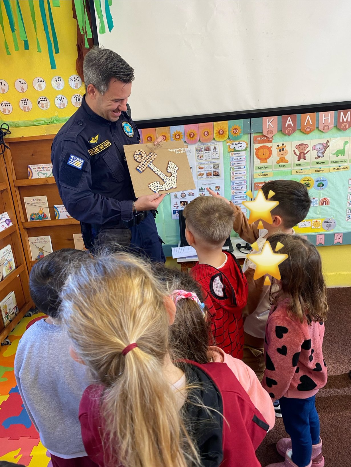 Στο τέλος, του προσφέραμε ένα όμορφο αναμνηστικό δώρο, μια κατασκευή από τα παιδιά του νηπιαγωγείου μας, ως ευχαριστία για την επίσκεψη και τις γνώσεις που μας πρόσφερε!