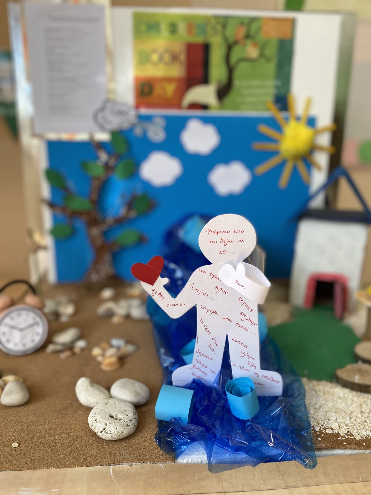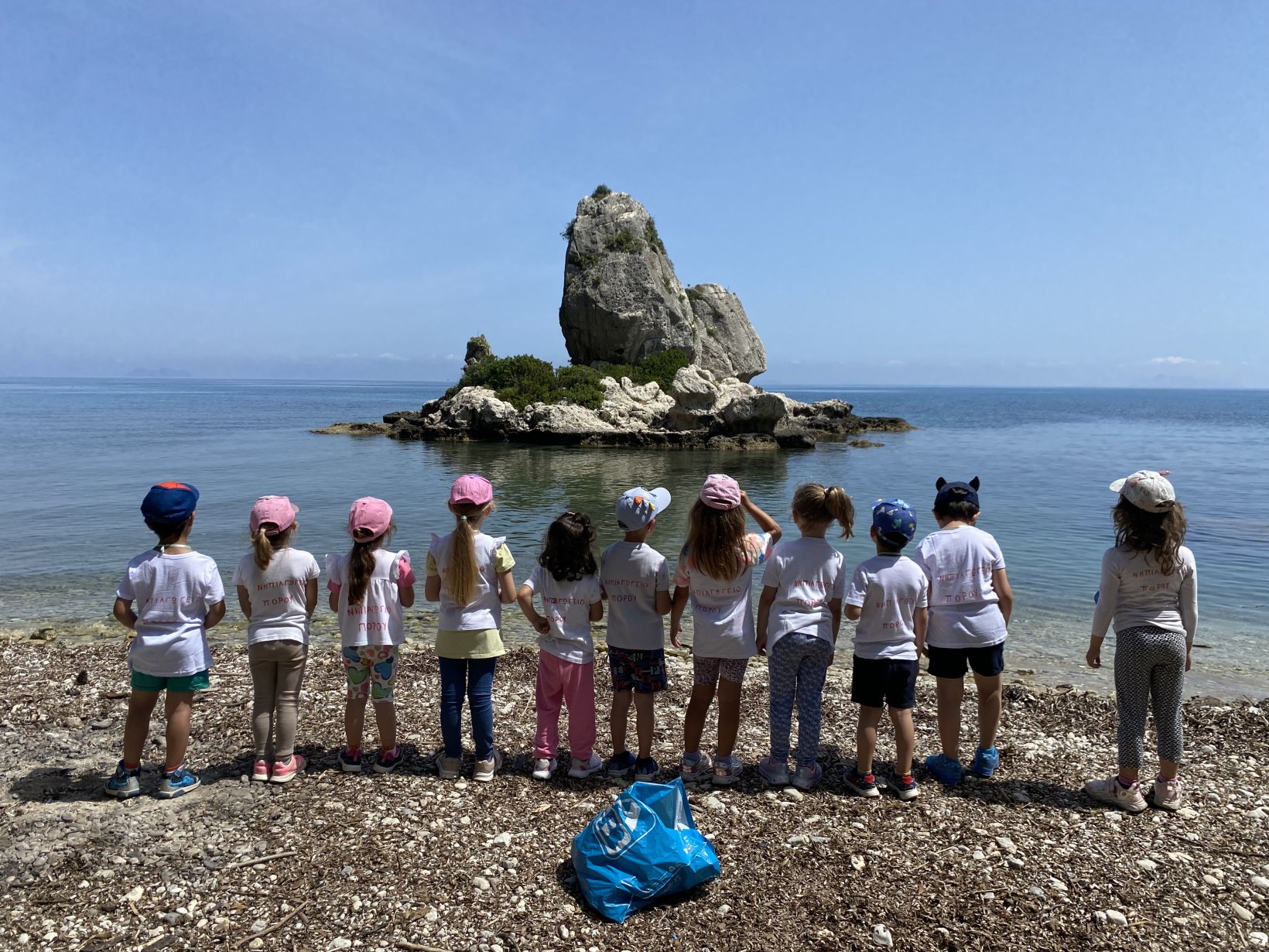 Οι μικροί καλλιτέχνες – μαθητές του Νηπιαγωγείου Πόρου, αξιοποιώντας τη φαντασία τους και δουλεύοντας ομαδικά, δημιούργησαν ένα μοναδικό έργο τέχνης. Χρησιμοποίησαν φυσικά υλικά του νησιού — όπως βότσαλα, ξυλάκια, άμμο, κοχύλια — καθώς και ανακυκλώσιμα υλικά που συνέλεξαν και αναδιαμόρφωσαν δημιουργικά, στέλνοντας και ένα οικολογικό μήνυμα για την προστασία του περιβάλλοντος.