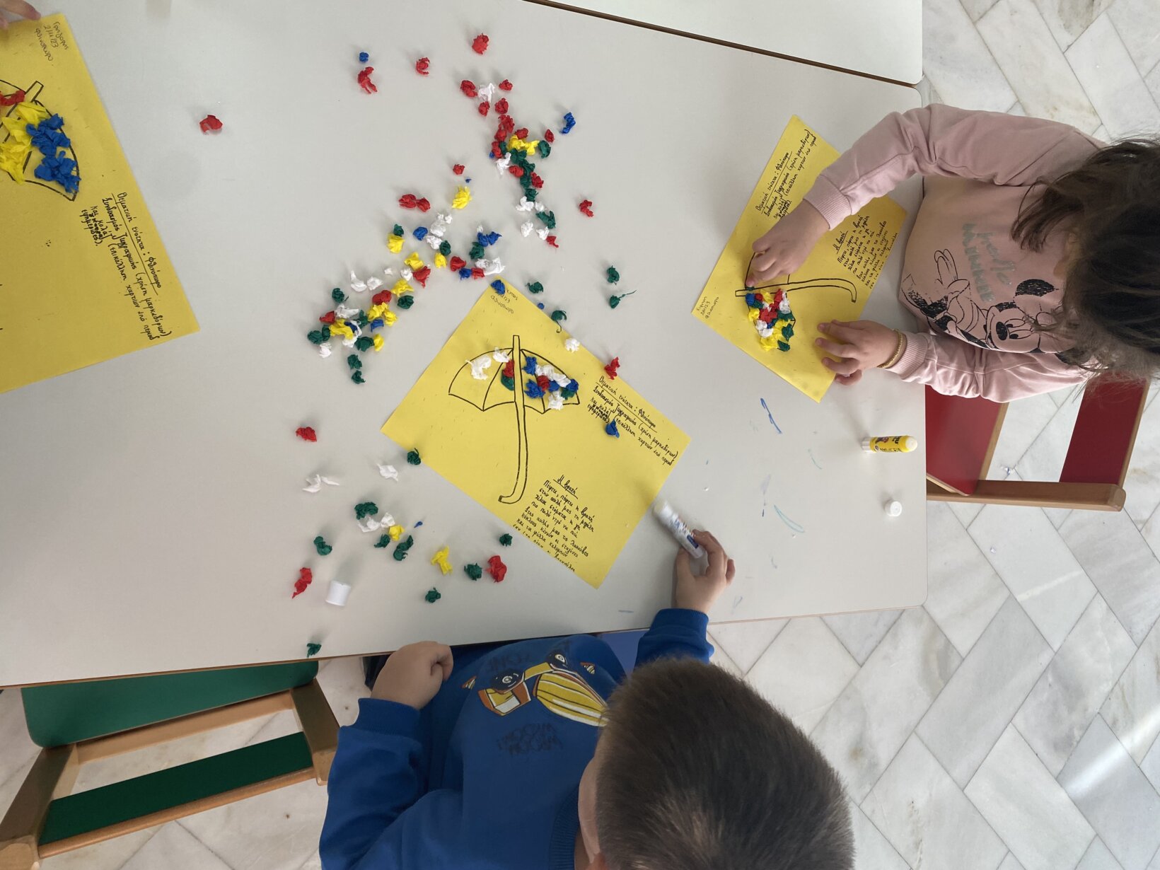 Θεματική Ενότητα: Φθινόπωρο Δημοσιεύθηκε 14 Νοεμβρίου 2023 από τον/την ΝΗΠΙΑΓΩΓΕΙΟ ΠΡΩΤΟΧΩΡΙΟΥ 1) Ομπρέλα: Συνδυασμός ζωγραφικής με μαρκαδόρους και κολλάζ με γκοφρέ χαρτί 2) Κατασκευή ατομική σκιάχτρο