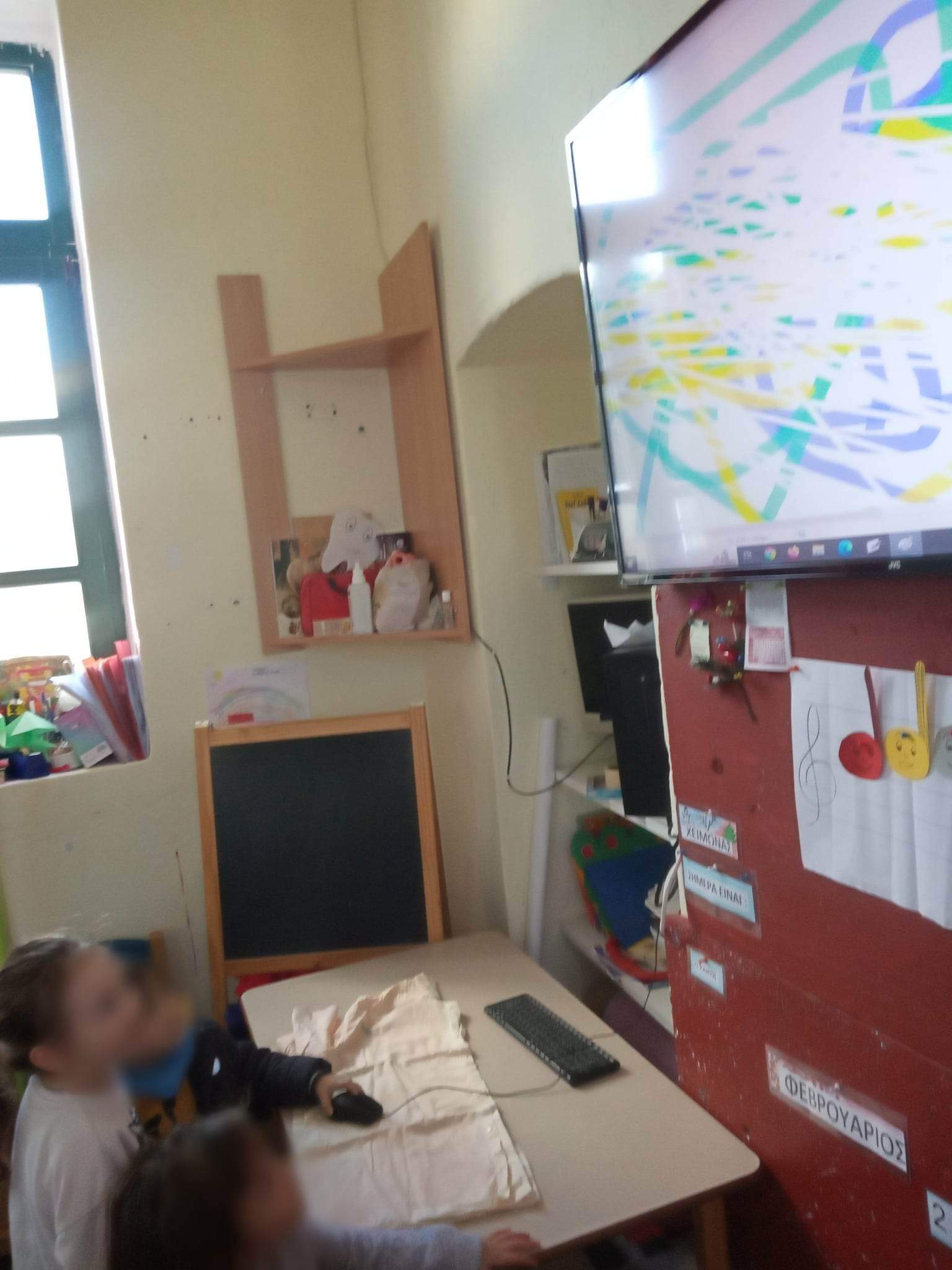 Μιλήσαμε και είδαμε μικρά βιντεάκια για την ελληνική παραδοσιακή τέχνη. Έγινε διδακτική αξιοποίηση του βιβλίου: “Τα ελληνάκια” , η εικονογράφηση του οποίου έγινε με βάση παραδοσιακά υφαντά σχέδια και φιγούρες.