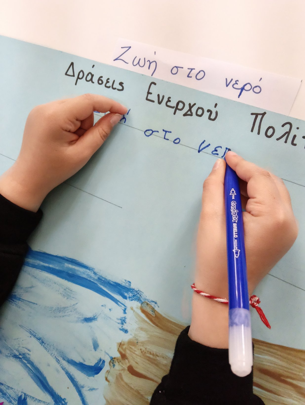 Έτσι, έπειτα από διαλογική συζήτηση καταλήξαμε στη δημιουργία μιας αφίσας με την καθαρή θάλασσα και την θάλασσα με σκουπίδια και τι μπορούμε να κάνουμε εμείς ως Ενεργοί Πολίτες..