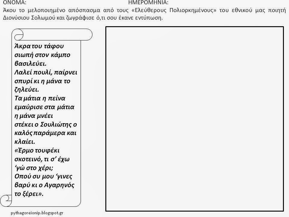 Διδασκαλία του Εθνικού μας ύμνου και γνωριμία με τους συντελεστές του (Σολωμός – Μάντζαρος).