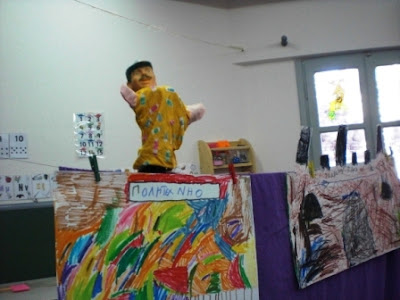 Φέτος έχουμε τη χαρά να συνεργαζόμαστε με τη συνάδελφο Ασπασία Τσαλαπατάνη, η οποία αποδείχτηκε μεγάλο ταλέντο στο κουκλοθέατρο. Επίσης φέτος μου έχει κάνει πολλάκις την τιμή η συνάδελφος/συγγραφέας Φρόσω Σπυροπούλου να μου στείλει πρωτόλειο και ανέκδοτο υλικό της. Έτσι λοιπόν αυτά τα δύο ταλέντα συνδυάστηκαν φέτος στη γιορτή για την επέτειο του Πολυτεχνείου. Πήραμε το κείμενο από το υπό έκδοση βιβλίο της Φρόσως “Στ’ αχνάρια της Δημοκρατίας”, το διασκεύασε η Ασπασία σε κουκλοθέατρο προσαρμοσμένο στην τάξη μας και αυτό ήταν ένα κομμάτι της σημερινής μας γιορτής. Σας ευχαριστώ και τις δύο από καρδιάς για τη συνεργασία!